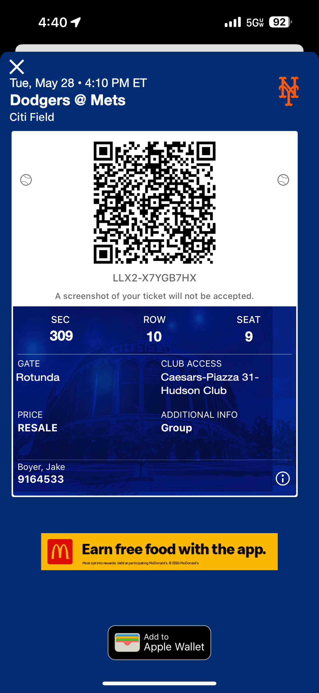 NY Mets Ticket - Premium